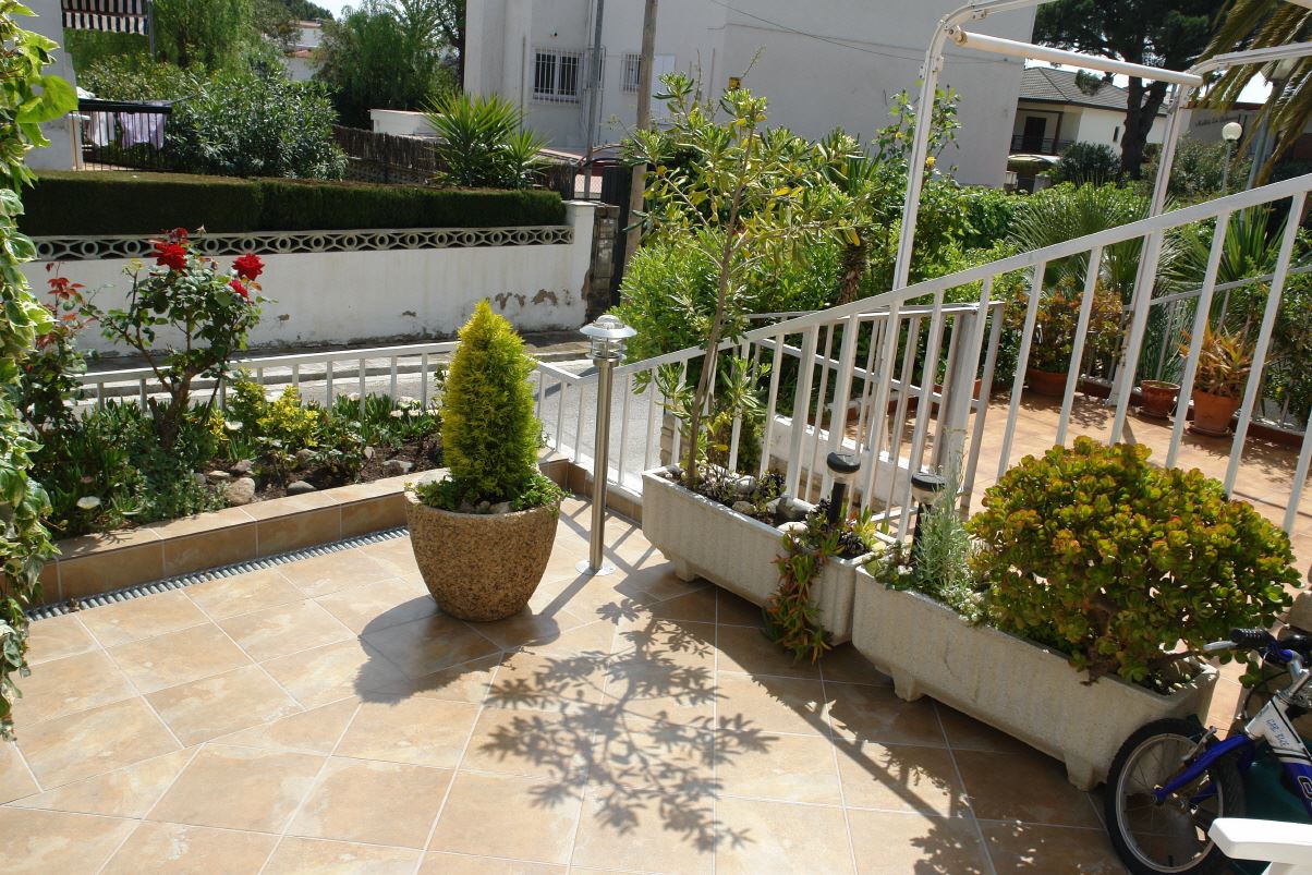 Blumenbepflanzung auf der hinteren Terrasse