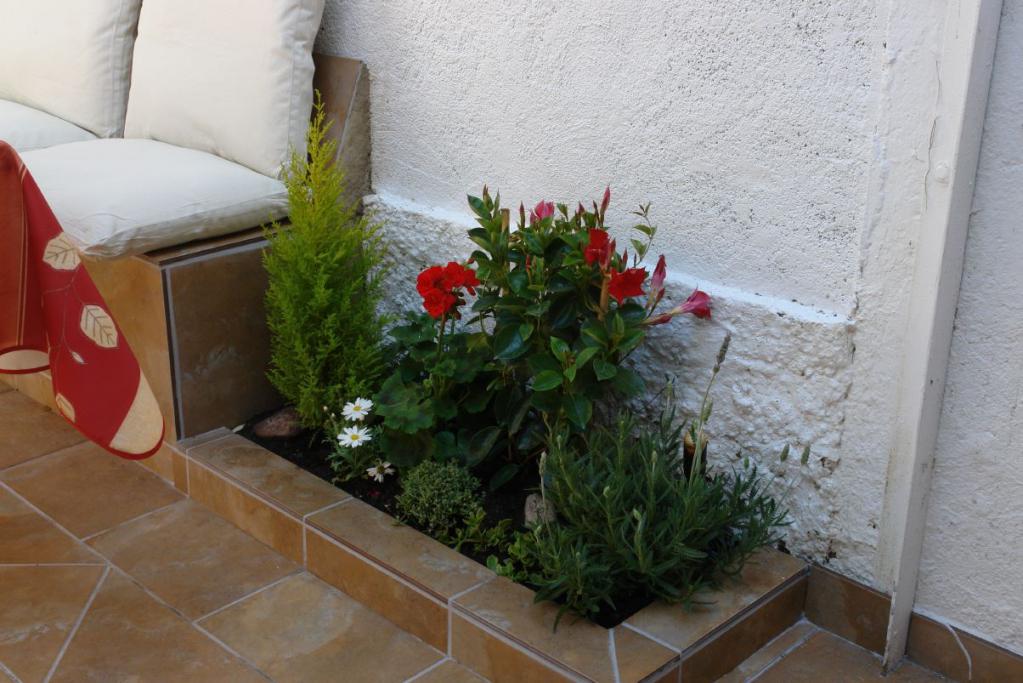 Blumenbepflanzung auf der hinteren Terrasse