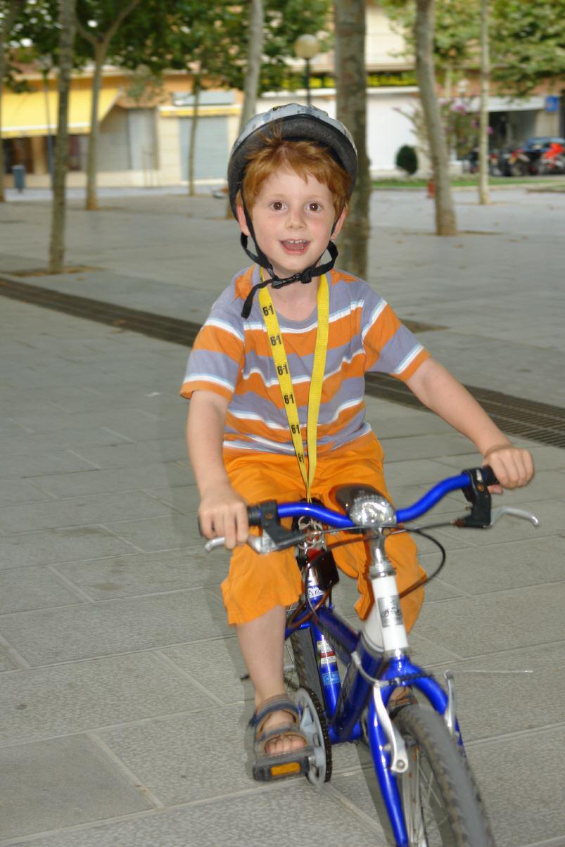 Jannik mit dem Radelauf dem Gehsteig