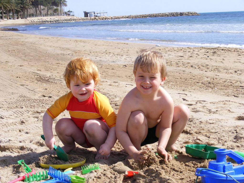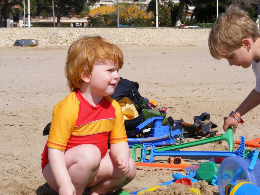 Annika und Moritz haben Spass am Sandspiel